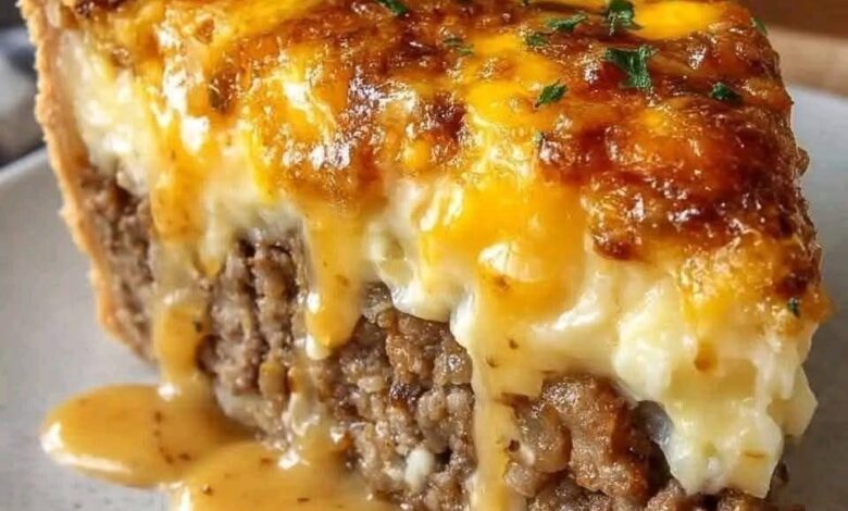 This dish is a hearty and simple comfort food, combining the classic flavors of a cheeseburger in an easy-to-slice pie form. It’s perfect for a family dinner.