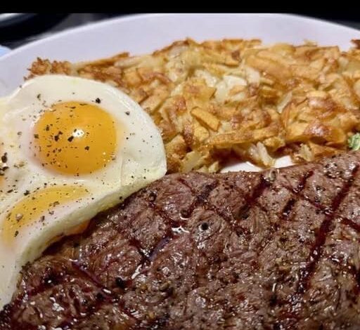 Bold, hearty, and made to satisfy, this peppermill steak and eggs plate is a classic breakfast built for serious appetites. Juicy steak crusted with cracked black pepper, paired with perfectly cooked eggs and crispy hash browns, delivers comfort and richness in every bite.
