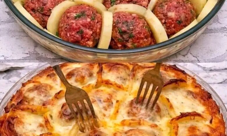 Boil Potatoes And Slice Them. Arrange With Meatballs And Cheese And Bake For A Delicious French Treat