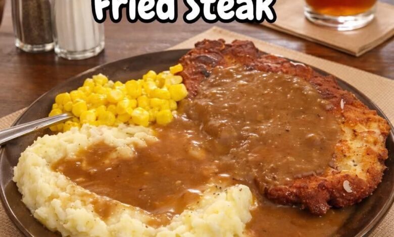 Heat about ½ inch of vegetable oil in a large skillet over medium heat. Fry the steaks for 3–4 minutes per side until golden brown and crispy. Transfer to a paper towel-lined plate.