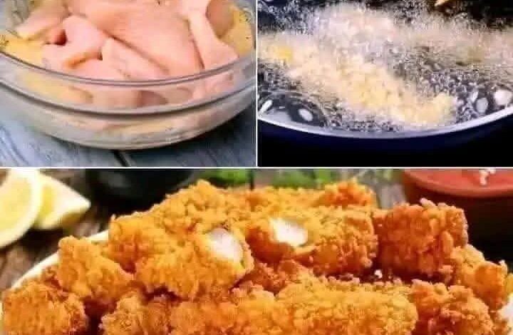 2. Then, we pass these strips through beaten egg and then through the toasted cornflakes, which we have crushed a little with our hands.