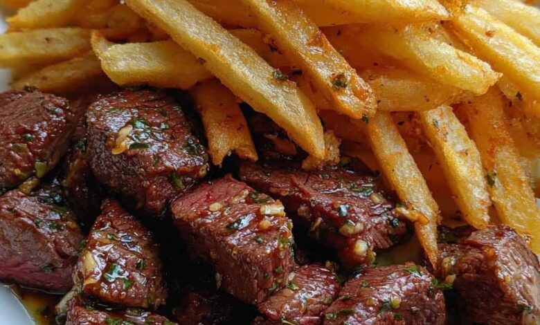 Garlic Butter Steak Bites with Crispy Fries 🍟🥩