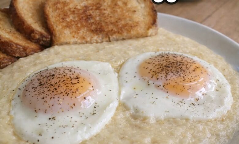 Spoon the hot grits onto plates, top with the eggs, and finish with black pepper. Serve with toast on the side.