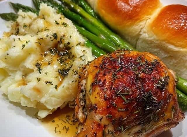 Herb Roasted Chicken Plate with Mash, Asparagus & Rolls 🍗🥔