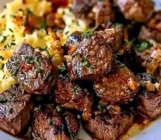I NEED SOME PEOPLE TO SAY (YUMMY 😋) SO I CAN ADD THEIR NAMES TO THE MEMBER LIST THANKS 🥰 MORDS DE STEAK AU BEURRE À L’AIL ET POMMES DE TERRE ÉCASSÉES AU FROMAGE 🥩🧄🧀🥔