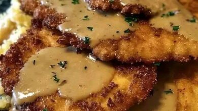 Pork Schnitzel with Dijon Gravy Crispy pork cutlets topped with rich, creamy mustard gravy ππ½