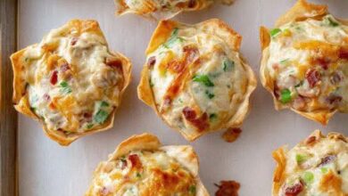 Mini Chicken (or Bacon) Cream Cheese Cups Ingredient: For the cups: – 12 wonton wrappers or 12 small phyllo dough…