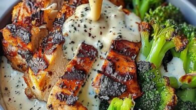 Grilled Chicken & Broccoli Bowls with Creamy Garlic Sauce Ingredients For the Chicken & Broccoli: 500g Chicken breasts (sliced or…