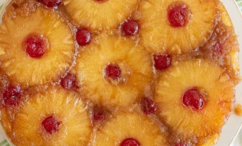 5️⃣ **Invert & serve:** Let cool for 5 minutes, then carefully invert onto a serving plate so the pineapple is on top.