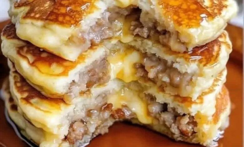 Add Sausage and Cheese: Gently fold cooked sausage and shredded cheese into the pancake batter until evenly distributed.