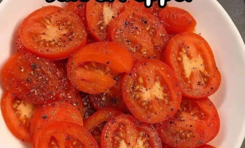 8. Let the tomatoes rest for 2–3 minutes so the seasonings can infuse into the flesh.