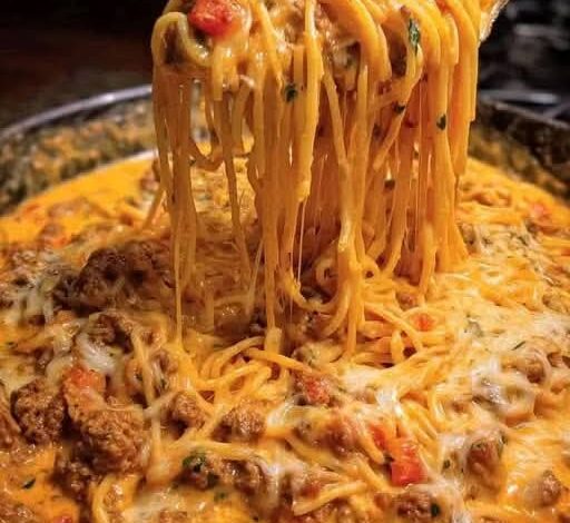 Creamy Rotel Spaghetti with Cheesy Ground Beef